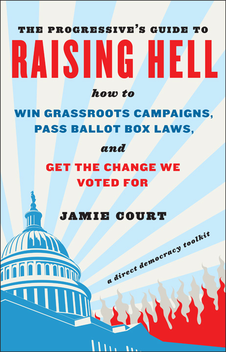 Also: How to Win Elections: JAMIE COURT explains how to win grassroots campaigns, pass ballot box laws, and get the change we voted for. Court, a longtime organizer of ballot campaigns and other initiatives, is the author of The Progressive’s Guide to Raising Hell. WATCH Jamie’s 30-second video now running in Times Square on the Jumbotron HERE.