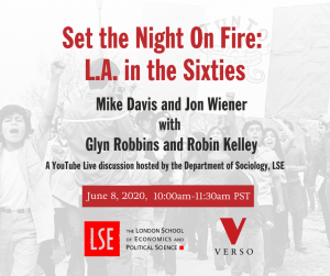 The London School of Economics Department of Sociology hosted a live discussion about “Set the Night on Fire: L.A. in the Sixties” on June 8: Mike Davis and Jon Wiener in conversation with Robin Kelley discussed the sixties’ movements in LA and their relevance today.